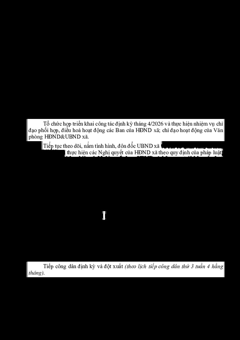 | Tiêu đề văn bản | CHƯƠNG TRÌNH Công tác tháng 4 năm 2026 của lãnh đạo HĐND xã và các Ban của HĐND xã | ||