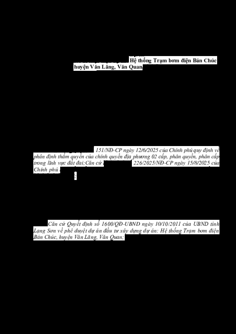 | Tiêu đề văn bản | Quyết định thu hồi đất để thực hiện dự án: Hệ thống Trạm bơm điện Bản Chúc huyện Văn Lãng, Văn Quan, tỉnh Lạng Sơn: hộ Chu Văn Hùng | ||