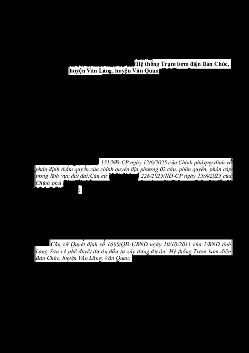 | Tiêu đề văn bản | QUYẾT ĐỊNH Về việc thu hồi đất để thực hiện dự án: Hệ thống Trạm bơm điện Bản Chúc, huyện Văn Lãng, huyện Văn Quan, tỉnh Lạng Sơn | ||