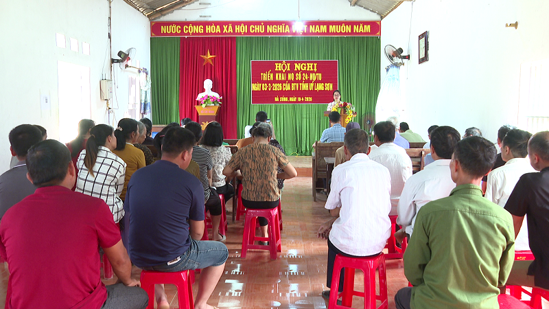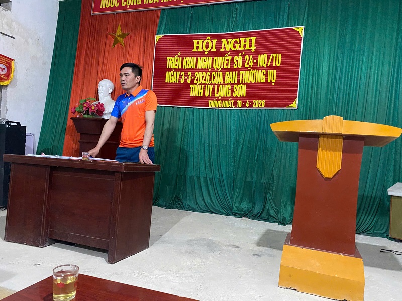 Từ ngày 08 đến 12/4/2026, tại nhà văn hóa thôn, các tổ tuyên truyền đã tổ chức tuyên truyền triển khai Nghị quyết 24-NQ/TU, ngày 03/3/2026 của Ban thường vụ Tỉnh ủy Lạng Sơn đến nhân dân. Đồng chí Lý Thị Dương, Phó Bí thư – Chủ tịch UBND xã – phụ trách các tổ 2,5,6,8 đã tổ chức tuyên truyền tại thôn Nà Súng; đồng chí Lương Thế Cường, Ủy viên BTV, Trưởng ban xây dựng đảng, tổ trưởng tổ 6 đã tổ chức tuyên truyền tại các thôn Khun Pàu, Khòn Cải, Thống Nhất; đồng chí Nông Văn Tùng, Ủy viên BTV, Phó Chủ tịch xã – tổ trưởng tổ 4 đã tổ chức tuyên truyền tại các thôn Việt Yên, Bản Hạ, Bản Thượng, Khòn Lạn; đồng chí Hoàng Thị Hiếu, Phó Chủ tịch UBND xã – tổ trưởng tổ 5 đã tổ chức tuyên truyền tại các thôn Pác Làng, Nà Bung. Dự buổi tuyên truyền còn có các đồng chí thành viên các tổ và đại diện hộ gia đình của thôn.