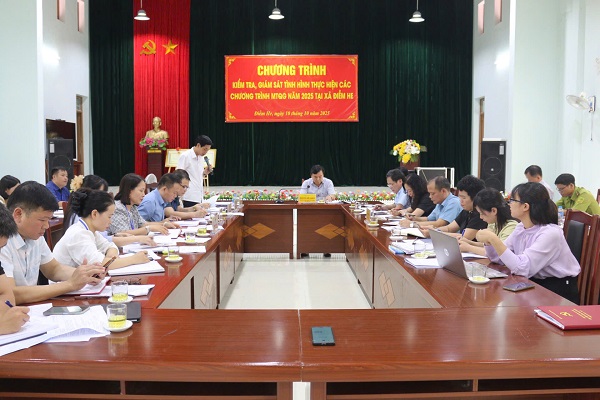 Tại biểu làm việc với Ban Chỉ đạo thực hiện các Chương trình MTQG xã. Đoàn kiểm tra, giám sát được nghe lãnh đạo UBND xã Báo cáo tình hình thực hiện các Chương trình mục tiêu quốc gia trên địa bàn xã Điềm He năm 2025.