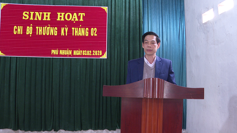Phát biểu tại buổi sinh hoạt chi bộ đồng chí Linh Văn Hùng, Bí thư Đảng ủy, Chủ tịch HĐND xã Điềm He ghi nhận tinh thần đoàn kết, trách nhiệm của chi bộ Thôn Phú Nhuận trong việc lãnh đạo Nhân dân trong thôn thực hiện các nhiệm vụ phát triển kinh tế - xã hội ở địa phương. Đồng chí đề nghị chi bộ tiếp tục phát huy tinh thần đoàn kết, nâng cao chất lượng sinh hoạt Đảng; chi bộ cần tiếp tục quan tâm công tác phát triển đảng viên mới, thực hiện tốt các phong trào phát triển kinh tế; tăng cường tuyên truyền công tác bầu cử Đại biểu quốc hội và Hội đồng nhân dân các cấp, đồng thời chú trọng công tác tuyên truyền, vận động thanh niên thực hiện tốt Luật Nghĩa vụ quân sự, tham gia đầy đủ các bước trong công tác tuyển quân năm 2026.