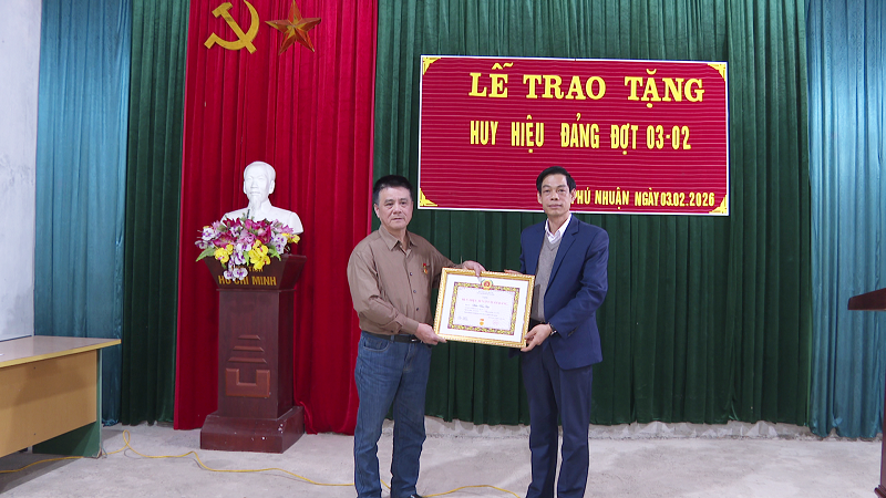 Cũng nhân dịp này Đồng chí Bí thư Đảng uỷ, Chủ tịch HĐND xã đã trao tặng huy hiệu 30 năm tuổi đảng cho đồng chí Hứa Văn Đài, đảng viên chi bộ thôn Phú Nhuận.