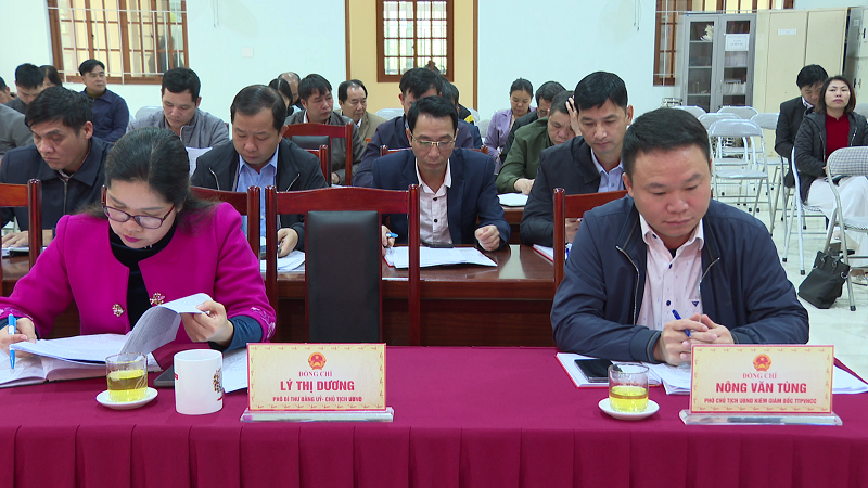Đồng chí Lý Thị Dương, Chủ tịch UBND xã thông qua báo cáo