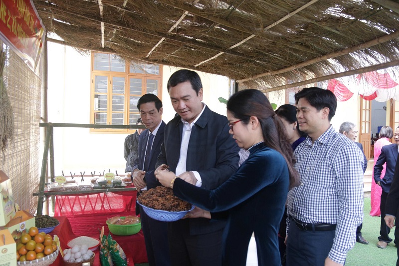 tham quan gian hàng giới thiệu nông sản xã Điềm He