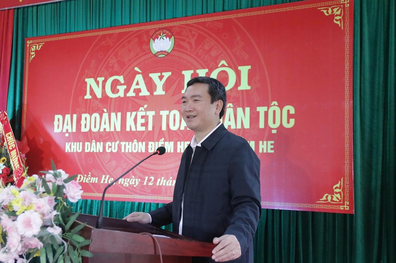 Phát biểu tại ngày hội, đồng chí Chủ tịch UBND tỉnh ghi nhận và đánh giá cao những kết quả nổi bật của thôn đã đạt được trên tất cả các lĩnh vực trong thời gian qua. Đồng chí mong muốn thời gian tới, người dân thôn Điềm He 2 tiếp tục phát huy những kết quả đạt được; luôn đoàn kết, thực hiện thắng lợi các phong trào thi đua phát triển kinh tế - xã hội; đảm bảo an ninh chính trị, trật tự an toàn xã hội; giữ gìn vệ sinh môi trường.