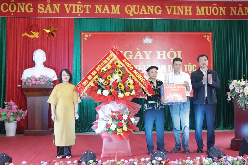 Nhân dịp này, lãnh đạo UBND tỉnh tặng quà và hoa chúc mừng ngày hội đại đoàn kết toàn dân tộc thôn Điềm He 2.