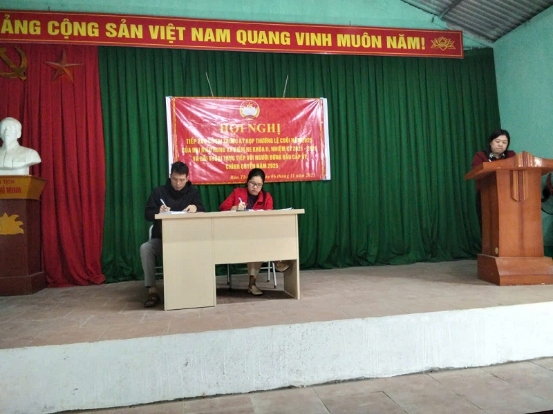 Thực hiện Kế hoạch số 71/KH-UBND, ngày 30/10/2025 của UBND xã Điềm He, về việc tổ chức đối thoại trực tiếp giữa người đứng đầu cấp ủy, chính quyền với Nhân dân năm 2025, chiều ngày 06/11/2025 tại nhà văn hóa thôn thôn Bản Thượng, đồng chí Lý Thi Dương, Chủ tịch UBND xã trực tiếp chủ trì buổi đối thoại với cử tri và Nhân dân thôn Bản Thượng. Tham dự buổi đối thoại có các đồng chí trong Thường trực HĐND xã, Đại diện lãnh đạo UBMTTQ xã, Lãnh đạo Văn phòng HĐND và UBND xã; Trưởng phòng Kinh tế, Trưởng phòng Văn hóa - xã hội, cùng đông đảo cử tri và Nhân dân thôn Bản Thượng.