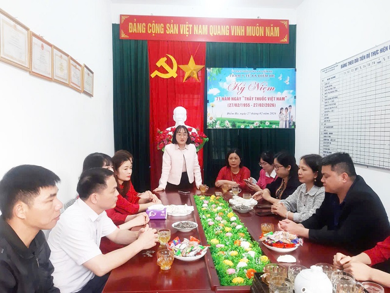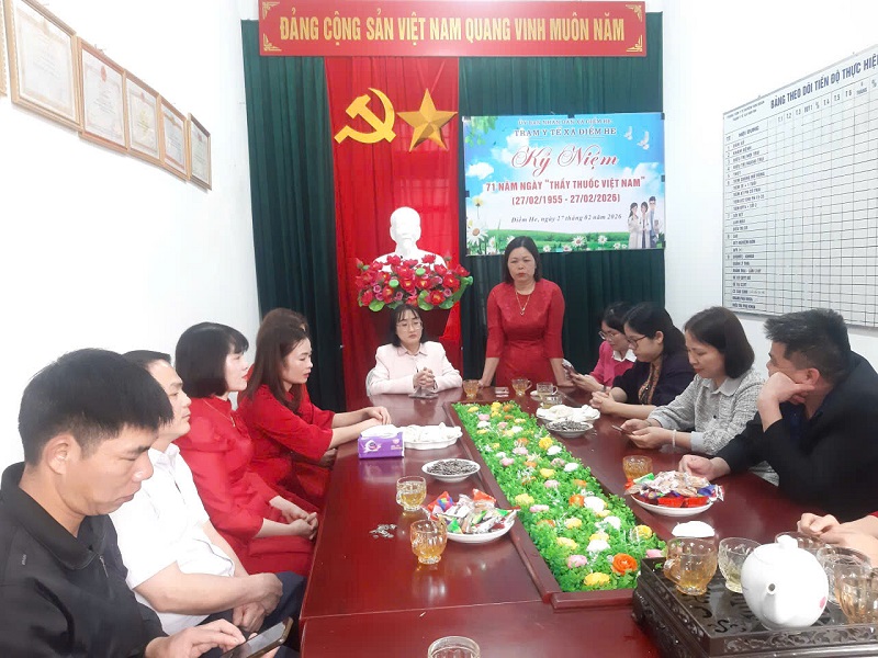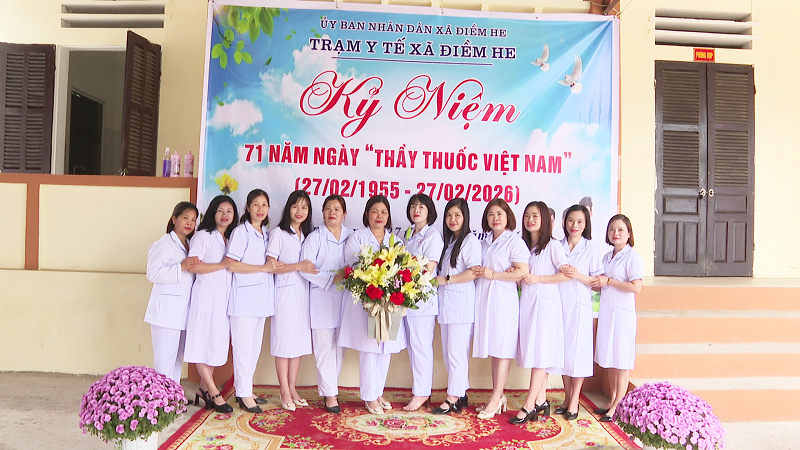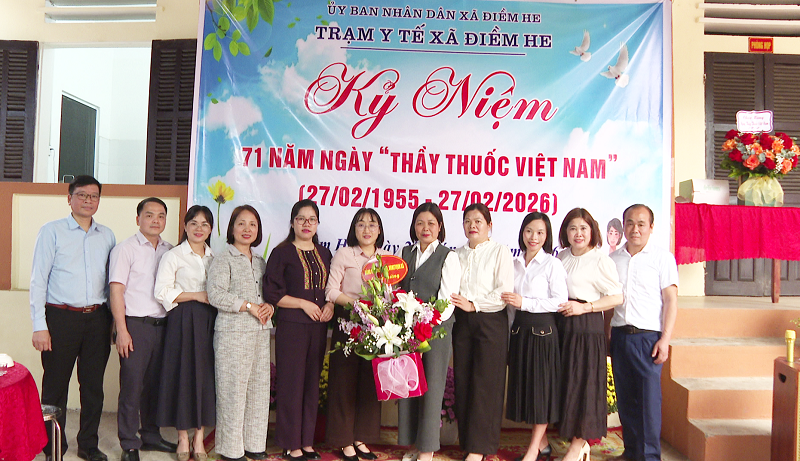 Nhân kỷ niệm 71 năm Ngày Thầy thuốc Việt Nam (27/02/1955 – 27/02/2026), ngày 27/02/2026, lãnh đạo Đảng ủy, HĐND, UBND, UBMTTQ Việt Nam xã, Ban Chỉ huy Quân sự xã, Công an xã cùng đại diện các đơn vị trường học trên địa bàn đã đến thăm hỏi, tặng hoa và chúc mừng Trạm Y tế xã Điềm He.