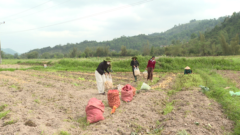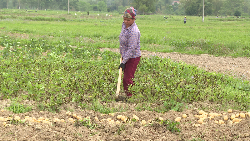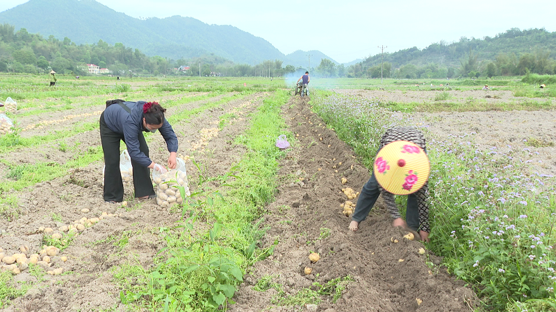 Nhân dân xã Điềm He nhộn nhịp thu hoạch khoai tây vụ đông
