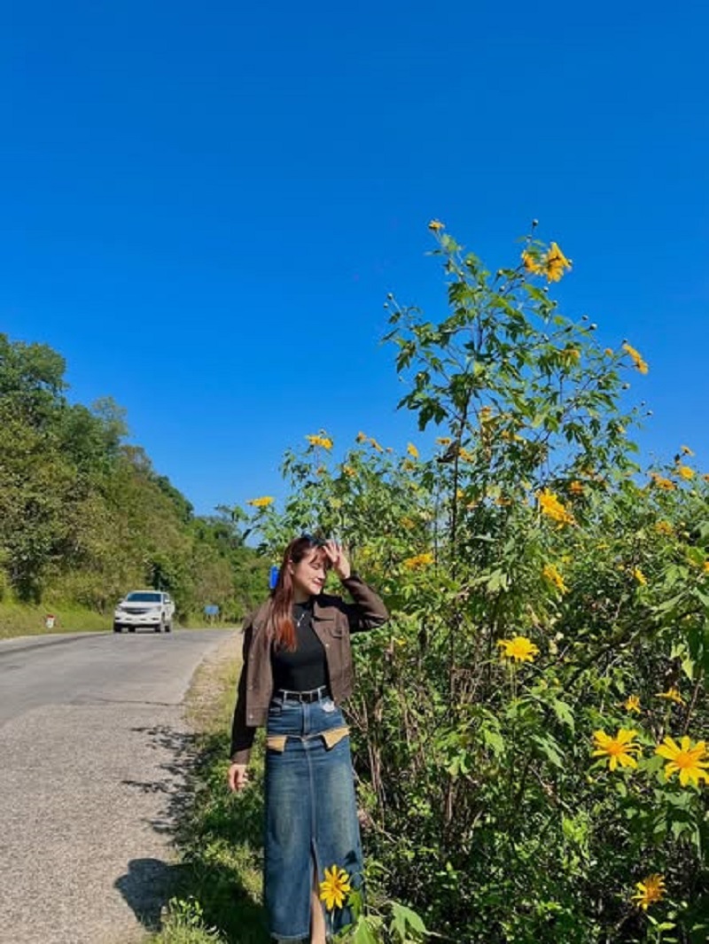 Dọc hai bên đường lên Bãi đá nhảy, những bụi hoa Dã quỳ nở vàng rực vào mùa đông tạo nên cảnh sắc đầy sức sống, thu hút đông đảo du khách đến tham quan, chụp ảnh, đồng thời kết hợp mua sắm các sản phẩm địa phương của người dân.
