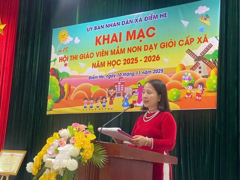 Sáng ngày 10/11/2025, tại nhà văn hóa xã, UBND xã Điềm He Tổ chức khai mạc Hội thi Giáo viên Mầm Non dạy giỏi xã Điềm He năm học 2025-2026. Dự và chỉ đạo có đồng chí Lương Thùy Nha, Phó Bí thư Thường trực Đảng ủy; đồng chí Hoàng Văn Hùng, Phó Chủ tịch HĐND xã; đồng chí Hoàng Thị Hiếu, Phó Chủ tịch UBND xã, đồng chí Vi Duy, Phó Chủ tịch UB MTTQ xã; lãnh đao, chuyên viên Phòng văn hóa xã hội và cán bộ, giáo viên của 04 trường Mầm Non trên địa bàn.