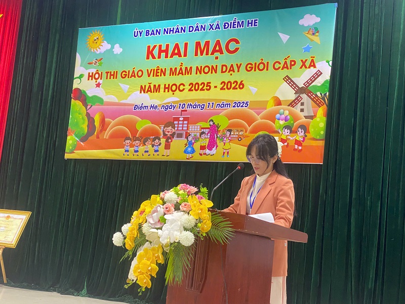Hội thi Giáo viên Mầm Non dạy giỏi xã Điềm He năm học 2025-2026 được diễn ra trong vòng 4 ngày (từ ngày 10-14/11/2025) với 02 phần thi đó là phần trình bày một biện pháp góp phần nâng cao chất lượng công tác chăm sóc, nuôi dưỡng, giáo dục trẻ em và phần thực hành một hoạt động giáo dục (tiết dạy).