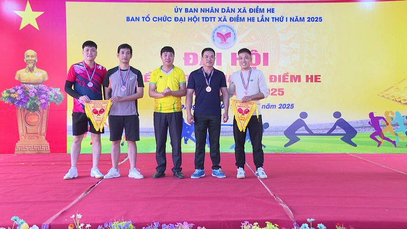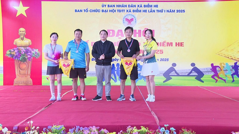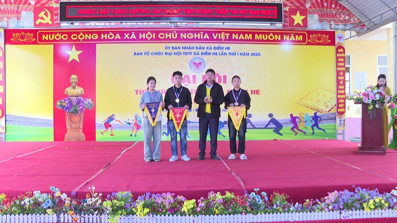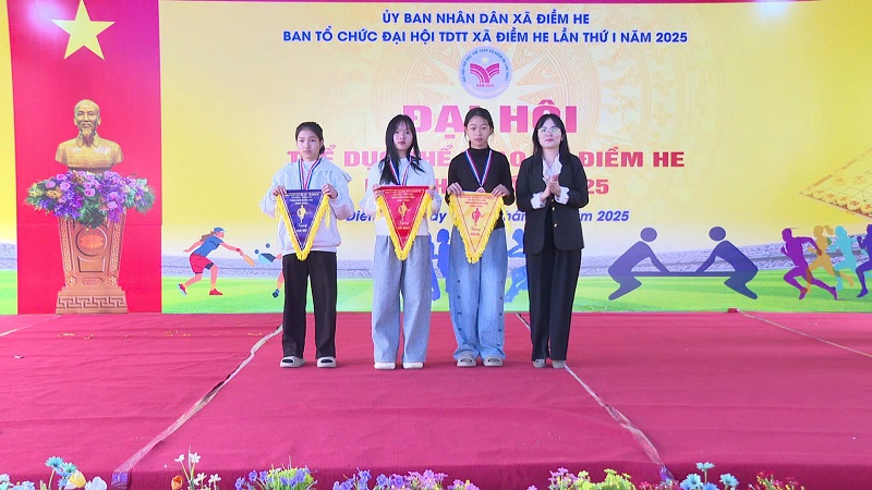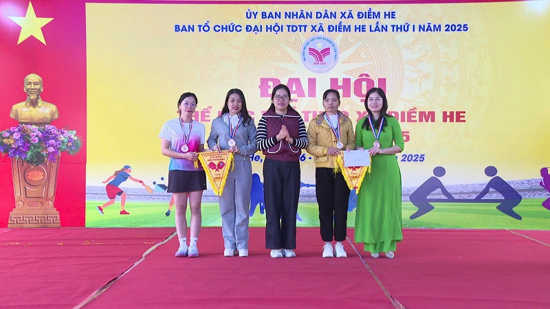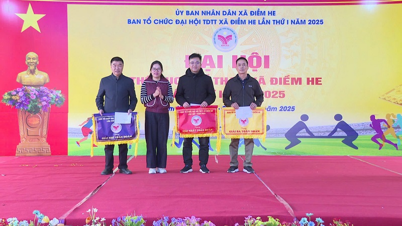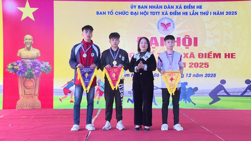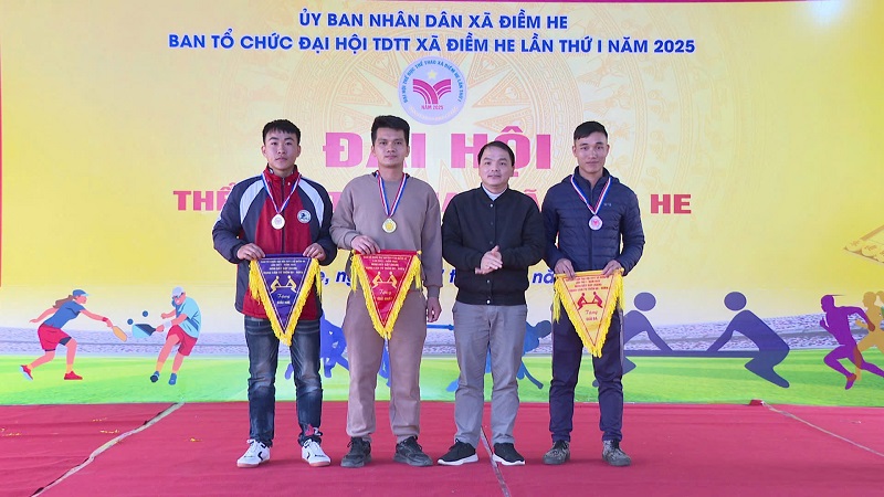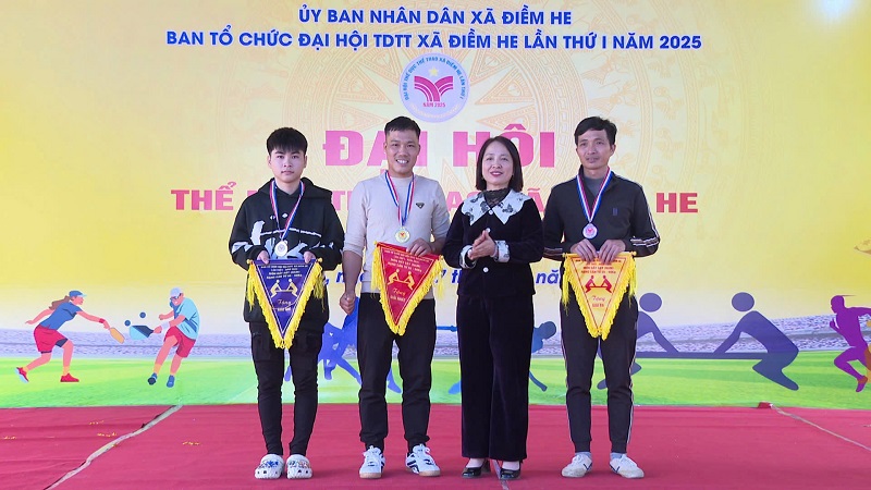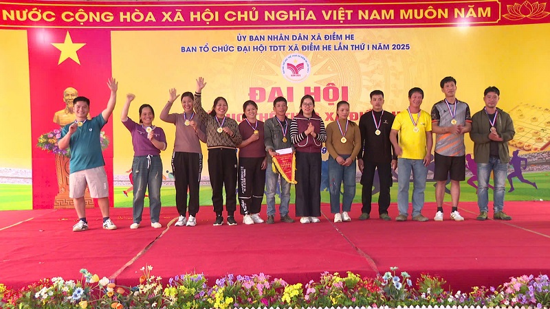 Sau 1,5 ngày thi đấu đại hội thể dục thể thao xã Điềm He lần thứ nhất năm 2025 thành công tốt đẹp. Ban tổ chức đã trao tổng cộng 110 bộ huy chương các loại cho các vận động viên. Đoàn vận động viên trường THPT Văn Quan xếp thứ nhất toàn đoàn với 09 huy chương vàng, 08 huy chương bạc, 04 huy chương đồng; Đoàn vận động viên trường TH&THCS Liên Hội xếp thứ nhì toàn đoàn với 02 huy chương vàng, 01 huy chương bạc, 05 huy chương đồng; Đoàn vận động viên thôn Phú Nhuận xếp thứ ba toàn đoàn với 02 huy chương vàng, 01 huy chương bạc, 01 huy chương đồng.