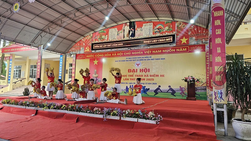 Ngày mùng 06, và 07/12/2025 tại trường TH&THCS Điềm He, UBND xã Điềm He long trong tổ chức đại hội thể dục thể thao lần thứ nhất năm 2025. Đến dự chỉ đạo có đồng chí Linh Văn Hùng, Bí thư Đảng ủy – Chủ tịch HĐND xã; đồng chí Lương Thùy Nha, Phó Bí thư Thường trực Đảng ủy xã; đồng chí Lý Thị Dương, Chủ tịch UBND xã; đồng chí Hoàng Thị Hiếu, Phó Chủ tịch UBND xã – Trưởng ban tổ chức đại hội; dự buổi khai mạc còn có các đồng chí đại diện Thường trực HĐND; Lãnh đạo UBND xã; Đại diện lãnh đạo Ban Xây dựng Đảng; Ủy Ban kiểm tra Đảng ủy; Văn phòng Đảng ủy xã; Đại diện lãnh đạo Ủy ban MTTQ Việt Nam xã; Đại diện lãnh đạo các phòng, đơn vị: Phòng Kinh tế, Phòng Văn hóa – Xã hội; Văn phòng HĐND và UBND xã; Trung tâm Phục vụ Hành chính công xã; Đại diện lãnh đạo Công an xã; Ban Chỉ huy Quân sự xã; lãnh đạo Trạm Y tế xã; lãnh đạo các trường học trên địa bàn và sự có mặt của 34 đoàn vận động viên đại diện cho các cơ quan, trường học và các thôn trên địa bàn xã.