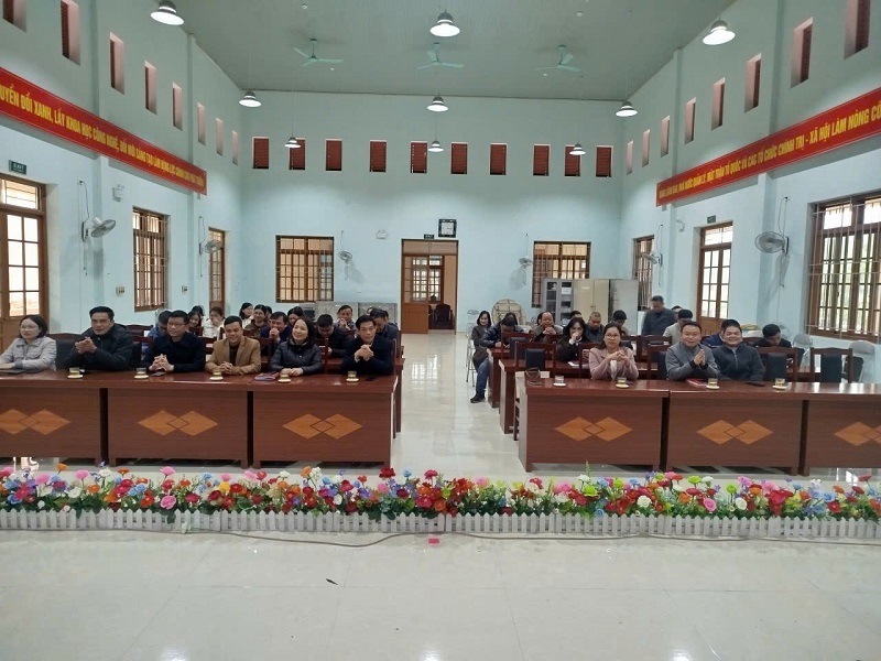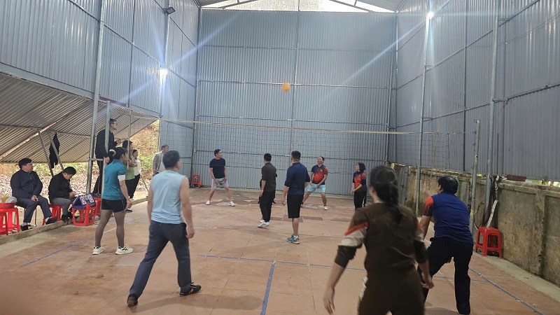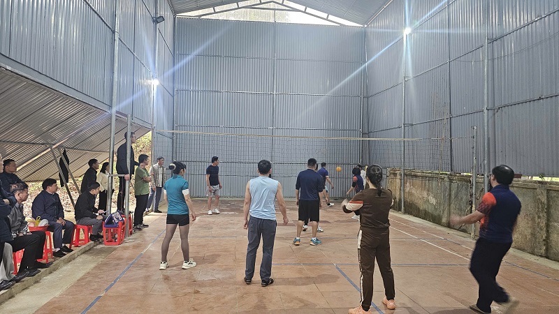 Nhân dịp này tổ chức giao lưu bóng chuyền hơi giữa khối Đảng ủy và UBND xã.