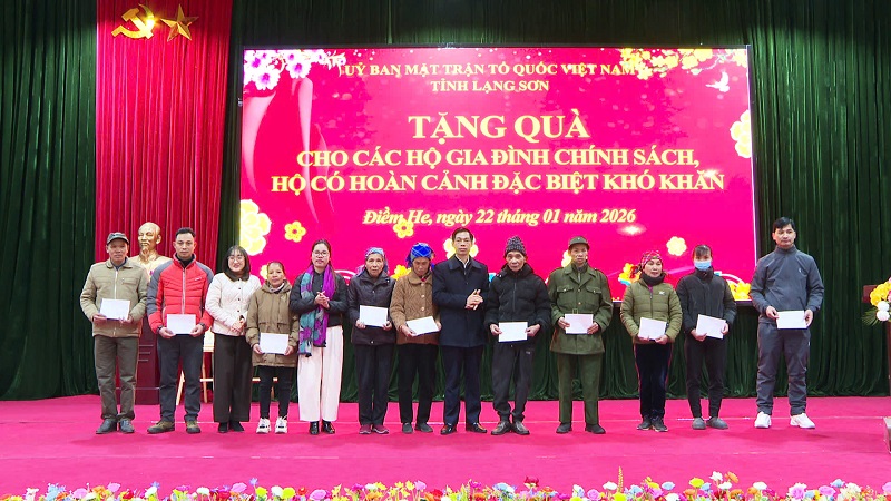 Cũng trong buổi sáng nay Ủy ban MTTQ Việt Nam tỉnh Lạng Sơn đã tặng 10 suất qùa, mỗi suất 1.000.000đ cho 10 hộ gia đình nghèo, người có hoàn cảnh đặc biệt khó khăn, người khuyết tật… nhân dịp Tết Xuân Bính Ngọ năm 2026.