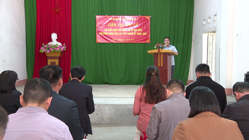 Phát biểu tại buổi diễn tập, đồng chí Linh Văn Hùng, Bí thư Đảng ủy – Chủ tịch HĐND xã – Trưởng BCĐ bầu cử xã khẳng định diễn tập là bước chuẩn bị quan trọng để xã sẵn sàng tổ chức thành công cuộc bầu cử đại biểu Quốc hội khóa XVI và đại biểu HĐND các cấp nhiệm kỳ 2026-2031 trên địa bàn xã. Đồng thời yêu cầu các tổ bầu cử tiếp tục rà soát cơ sở vật chất, trang thiết bị phục vụ bầu cử; đẩy mạnh tuyên truyền để người dân hiểu rõ ý nghĩa, tầm quan trọng của cuộc bầu cử.