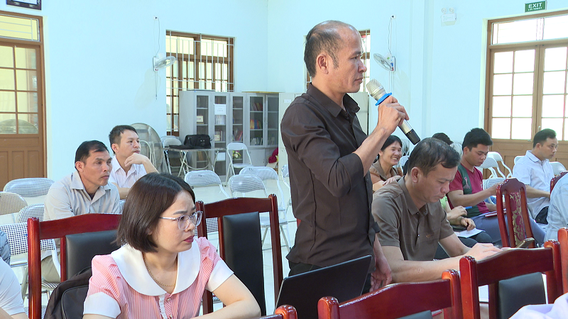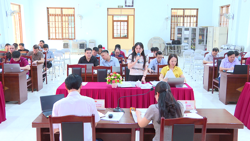 Lãnh đạo Phòng Văn hóa - xã hội báo cáo đánh giá tình hình thực hiện công tác xóa nhà tạm, nhà dột nát.