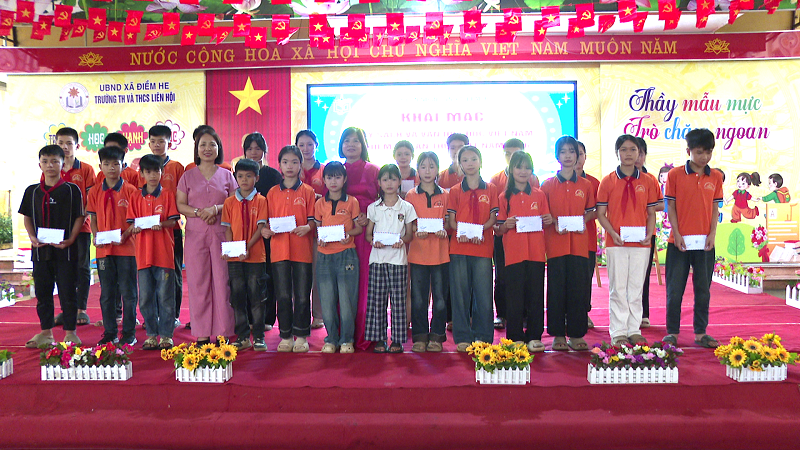 Trong khuôn khổ chương trình, Lãnh đạo xã Điềm He đã trao 10 xuất quà cho 10 em học sinh có hoàn cảnh khó khăn vươn lên trong học tập. Đây là những món quà ý nghĩa nhằm động viên, khích lệ tinh thần vượt khó vươn lên trong học tập.