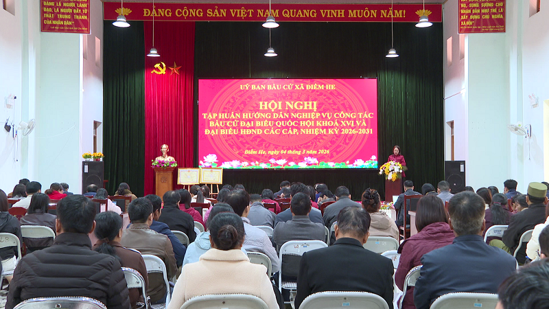 Sáng 04/3/2026, tại hội trường nhà văn hóa xã, Ủy ban bầu cử xã Điềm He tổ chức Hội nghị tập huấn, hướng dẫn nghiệp vụ công tác bầu cử đại biểu Quốc hội khóa XVI và đại biểu Hội đồng nhân dân các cấp nhiệm kỳ 2026 – 2031. Tham dự Hội nghị có đồng chí Hoàng Thị Hiếu, Phó Chủ tịch UBND xã – thành viên BCĐ bầu cử xã; lãnh đạo công chức tham mưu về công tác bầu cử của Ủy ban MTTQ xã, Phòng Văn hóa xã hội; các đồng chí thành viên Ủy ban bầu cử xã, tổ giúp việc ủy ban bầu cử xã, tổ trưởng, thư ký, thành viên của 25 tổ bầu cử.