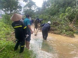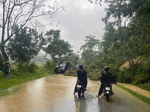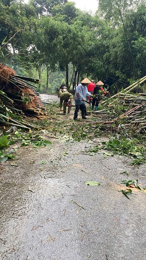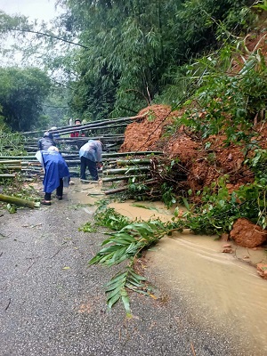 Trước tình hình trên UBND xã, Ban chỉ huy phòng thủ dân sự xã đã huy động lực lượng dân quân, bí thư chi bộ, trưởng thôn và nhân dân các thôn tập trung khắc phục ngay những đoạn bị sạt lở đất, cây cối đổ ngang đường để giao thông đi lại được thông suốt.