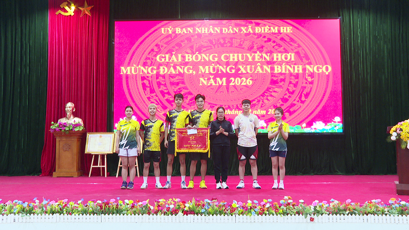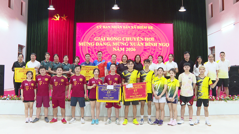 Trong không khí vui tươi, phấn khởi của những ngày đầu Xuân Bính Ngọ 2026, sáng ngày 28/02/2026, UBND xã Điềm He tổ chức Giải Bóng chuyền hơi mừng Đảng, mừng Xuân Bính Ngọ năm 2026. Đây là một trong các hoạt động thiết thực chào mừng các ngày lễ lớn của đất nước, đồng thời hướng tới cuộc bầu cử đại biểu Quốc hội khóa XVI và đại biểu HĐND các cấp nhiệm kỳ 2026 – 2031, sự kiện chính trị quan trọng của toàn dân tộc. Giải đấu không chỉ là ngày hội thể thao sôi nổi mà còn là dịp để cán bộ, đảng viên và Nhân dân trên địa bàn xã tăng cường giao lưu, thắt chặt tình đoàn kết, tạo khí thế thi đua mới trong năm 2026.