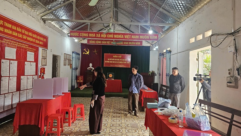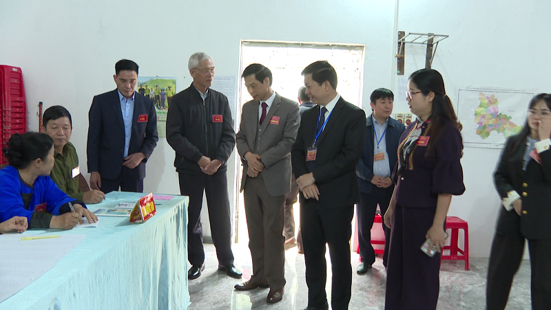 Lãnh đạo xã kiểm tra công tác chuẩn bị bầu cử