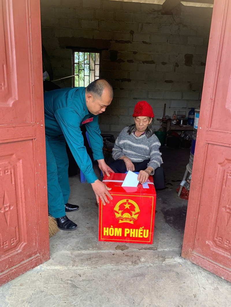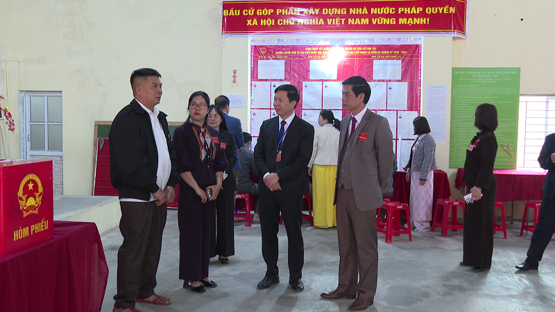 Đoàn kiểm tra số 9 tỉnh Lạng Sơn và lãnh đạo xã kiểm tra việc bỏ phiếu