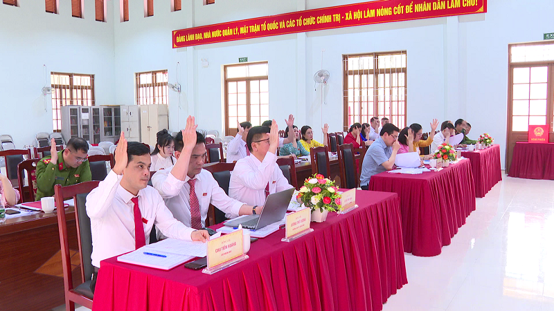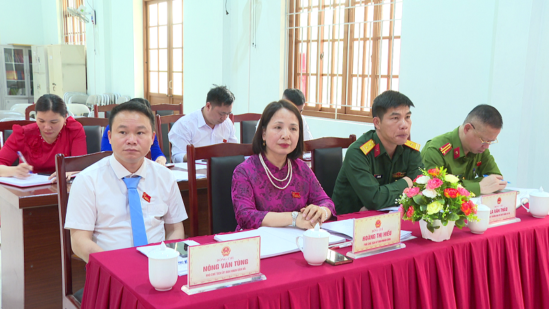 Kỳ họp thực hiện công tác tổ chức bộ máy của HĐND và UBND xã thông qua việc bầu các chức danh chủ chốt như Chủ tịch, Phó Chủ tịch HĐND; Trưởng các Ban của HĐND; Chủ tịch, các Phó Chủ tịch và các Ủy viên UBND xã. Theo đó đồng chí Linh Văn Hùng, Bí thư Đảng ủy, chủ tịch HĐND xã khóa II, nhiệm kỳ 2021 -2026 tiếp tục được bầu giữ chức Chủ tịch HĐND xã khóa III, nhiệm kỳ 2026 - 2031; đồng Chí Hoàng Văn Hùng được bầu giữ chức vụ phó Chủ tịch HĐND xã khóa III, nhiệm kỳ 2026 – 2031; đồng chí Chu Tiến Hoàng - ủy viên Ban Thường vụ Đảng ủy, Chủ nhiệm UBKT đảng ủy xã, được bầu là Trưởng ban văn hóa – xã hội HĐND xã Khóa III, nhiệm kỳ 2026 -2031; đồng chí Lương Thế Cường – Uỷ viên Ban Thường vụ Đảng ủy, Trưởng Ban xây dựng Đảng ủy xã, được bầu giữ chức vụ Trưởng ban kinh tế - ngân sách HĐND xã Khóa III, nhiệm kỳ 2026 -2031; Đồng chí Lý Thị Dương – Phó Bí thư Đảng ủy, Chủ tịch UBND xã khóa II, nhiệm kỳ 2021 -2026 tiếp tục được bầu giữ chức Chủ tịch UBND xã khóa III, nhiệm kỳ 2026 – 2031; Đồng chí Hoàng Thị Hiếu, Nông Văn Tùng được bầu giữ chức vụ Phó Chủ tịch UBND xã khóa III, nhiệm kỳ 2026 – 2031.