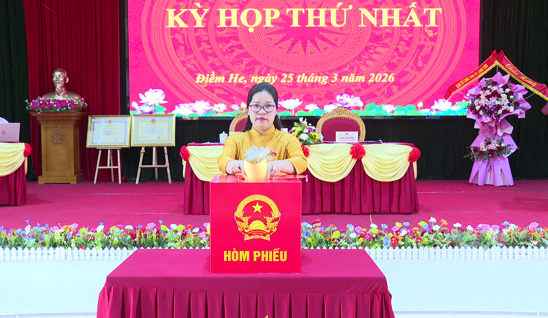 Chiều 25/3/2026, Hội đồng nhân dân xã Điềm He tổ chức Kỳ họp thứ nhất, nhiệm kỳ 2026 – 2031. Dự kỳ họp có đồng chí Lương Trương Đạt, Tỉnh ủy viên, Phó Trưởng Ban Thường trực Ban Tổ chức Tỉnh ủy; đồng chí Linh Văn Hùng - Bí thư Đảng ủy, Chủ tịch HĐND xã; đồng chí Lý Thị Dương – Phó Bí thư Đảng ủy, Chủ tịch UBND xã; dự kỳ họp còn có các đồng chí trong Thường trực Đảng ủy, HĐND, UBND, UBMTTQ Việt Nam xã; lãnh đạo các phòng chuyên môn thuộc UBND xã; Công an, Ban CHQS xã và các đại biểu HĐND xã khóa III nhiệm kỳ 2026 – 2031.