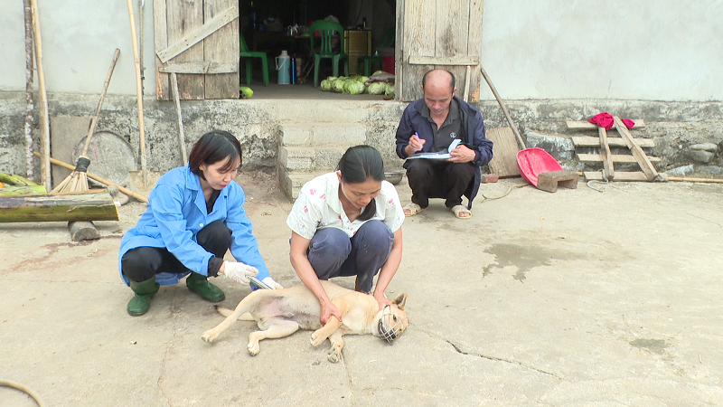 Theo đó, công tác tổ chức tiêm phòng được thực hiện từ ngày 23/3/2026 đến ngày 15/4/2026 tại 25 thôn trên toàn xã, với số lượng dự kiến tiêm 790 con các loại. Cụ thể: đối với trâu, bò, tiêm phòng các bệnh lở mồm long móng, viêm da nổi cục; đối với lợn tiêm phòng bệnh dịch tả lợn Châu Phi; chó, mèo tiêm phòng bệnh dại. Đàn vật nuôi tiêm phòng được lập danh sách để giám sát, theo dõi, đánh giá khả năng tạo miễn dịch
