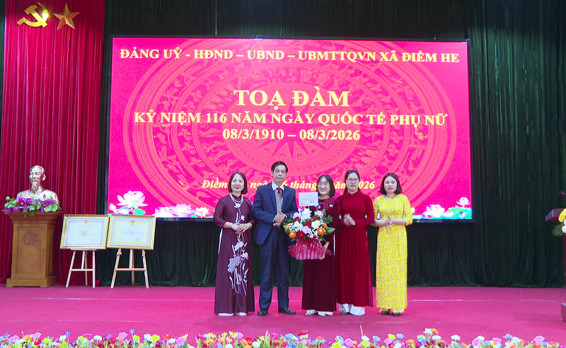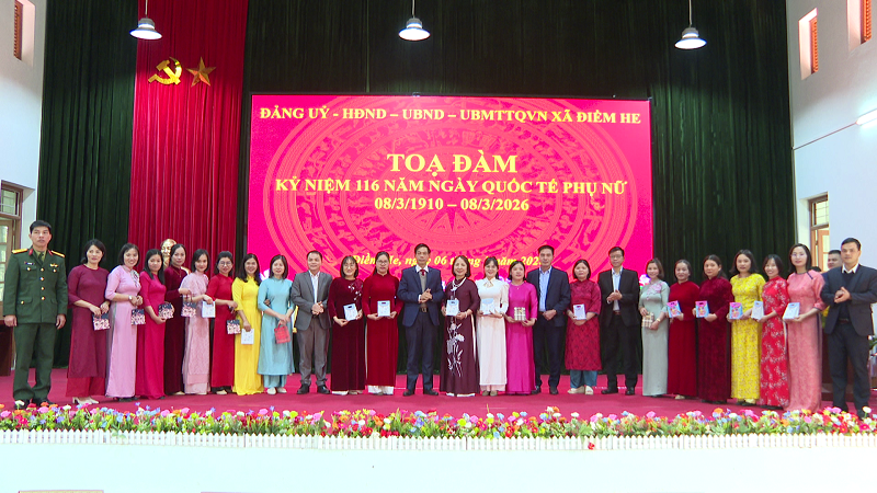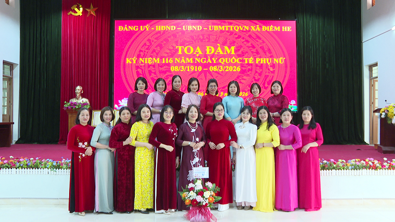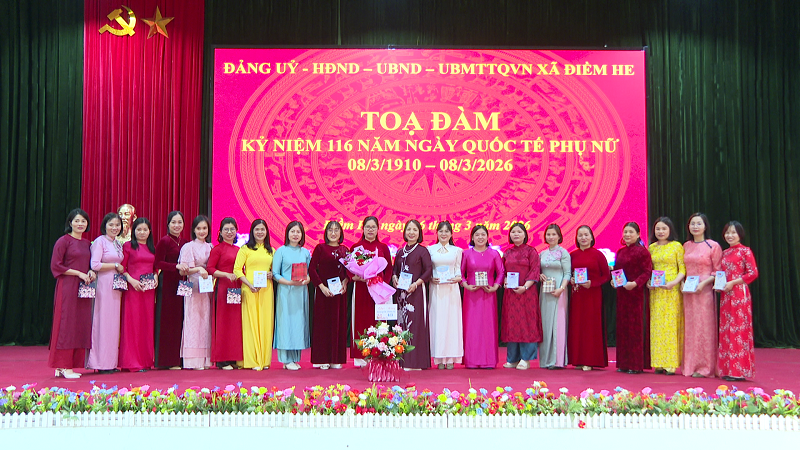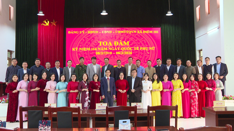 Sáng ngày 06/3/2026, Đảng ủy, HĐND, UBND, UBMTTQ Việt Nam xã Điềm He long trọng tổ chức buổi tọa đàm kỷ niệm 116 năm ngày Quốc tế Phụ nữ 08/3/1910 – 08/3/2026 nhằm ôn lại truyền thống tốt đẹp của phụ nữ Việt Nam, đồng thời tôn vinh những đóng góp của chị em phụ nữ trong công tác và đời sống. Dự buổi tọa đàm có đồng chí Linh Văn Hùng, Bí thư Đảng ủy – Chủ tịch HĐND xã; đồng chí Lương Thùy Nha, Phó Bí thư Thường trực Đảng ủy; đồng chí Lý Thị Dương, Phó Bí thư - Chủ tịch UBND xã; dự hội nghị còn có các đồng chí lãnh đạo HĐND, UBND xã; Uỷ ban MTTQVN xã; toàn thể CBCC xã; Ban chỉ huy Quân sự; Trung tâm Dịch vụ công ích xã.