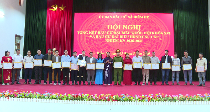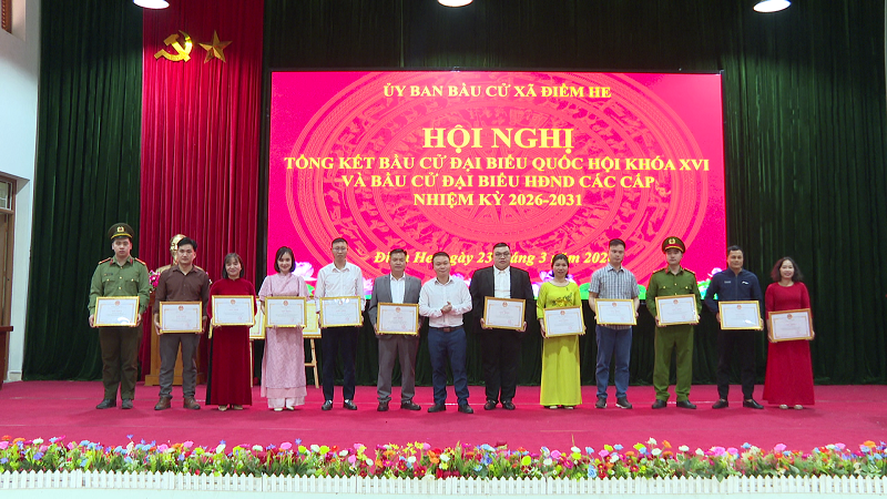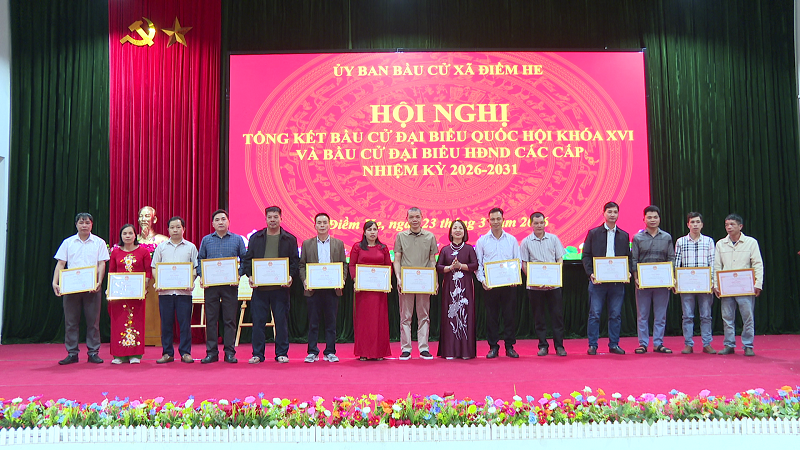 Ngày 23/03/2026, Ủy ban bầu cử xã Điềm He tổ chức hội nghị tổng kết Công tác bầu cử đại biểu Quốc hội khóa XVI và đại biểu HĐND các cấp nhiệm kỳ 2026-2031. Dự buổi tổng kết có đồng chí Linh Văn Hùng, Bí thư Đảng ủy – Chủ tịch HĐND xã – Trưởng BCĐ bầu cử; đồng chí Lý Thị Dương, Phó Bí thư Đảng ủy – Chủ tịch UBND xã – Phó Trưởng BCĐ bầu cử - Chủ tịch UBBC xã. Dự buổi lễ còn có các đồng chí trong Thường trực Đảng ủy, HĐND, UBND, Uỷ ban MTTQVN xã; Thành viên BCĐ, ủy ban bầu cử xã; Bí thư chi bộ - Trưởng thôn và các tập thể, cá nhân được khen thưởng.