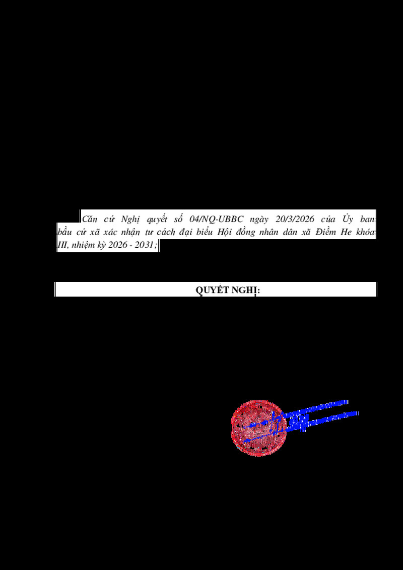 | Tiêu đề văn bản | NGHỊ QUYẾT Về việc thành lập các Tổ đại biểu Hội đồng nhân dân xã Điềm He khóa III, nhiệm kỳ 2026 - 2031 | ||