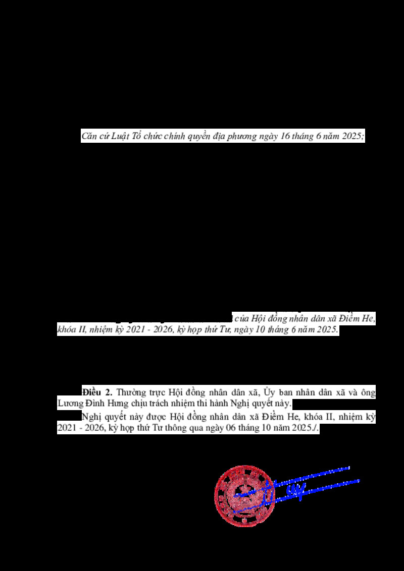 | Tiêu đề văn bản | Nghị quyết xác nhận kết quả bầu bổ sung Ủy viên Ủy ban nhân dân xã Điềm He, nhiệm kỳ 2021 - 2026 | ||