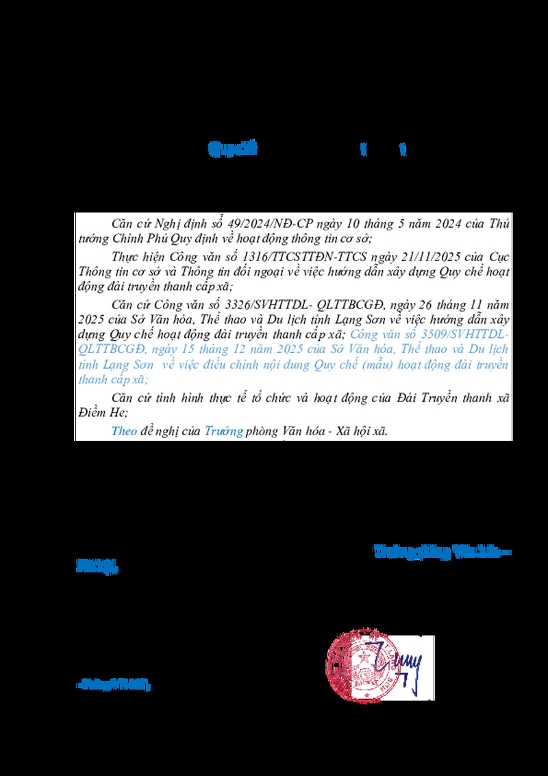 Tiêu đề văn bản QUYẾT ĐỊNH Ban hành Quy chế hoạt động của Đài truyền thanh xã Điềm He, tỉnh Lạng Sơn